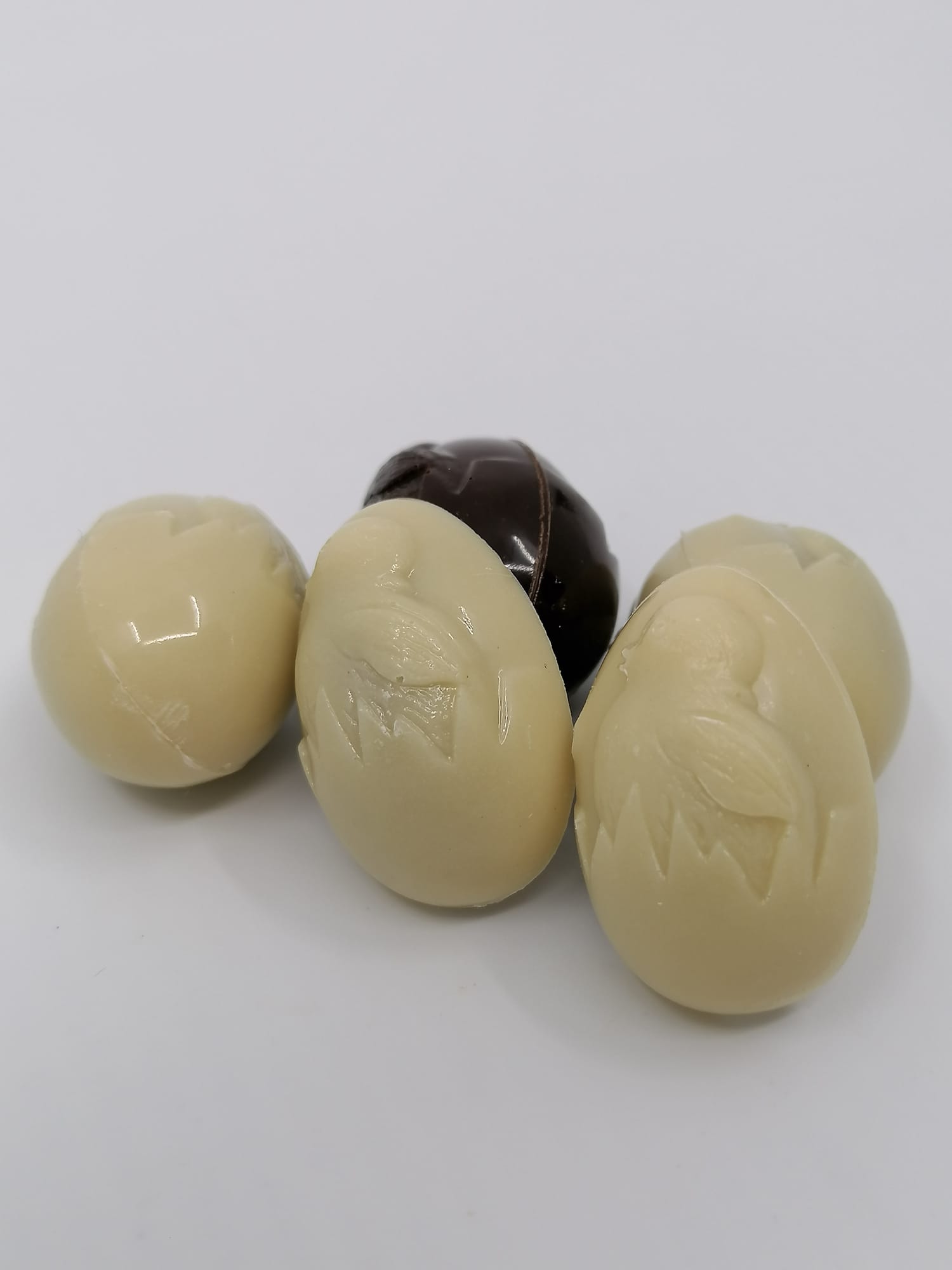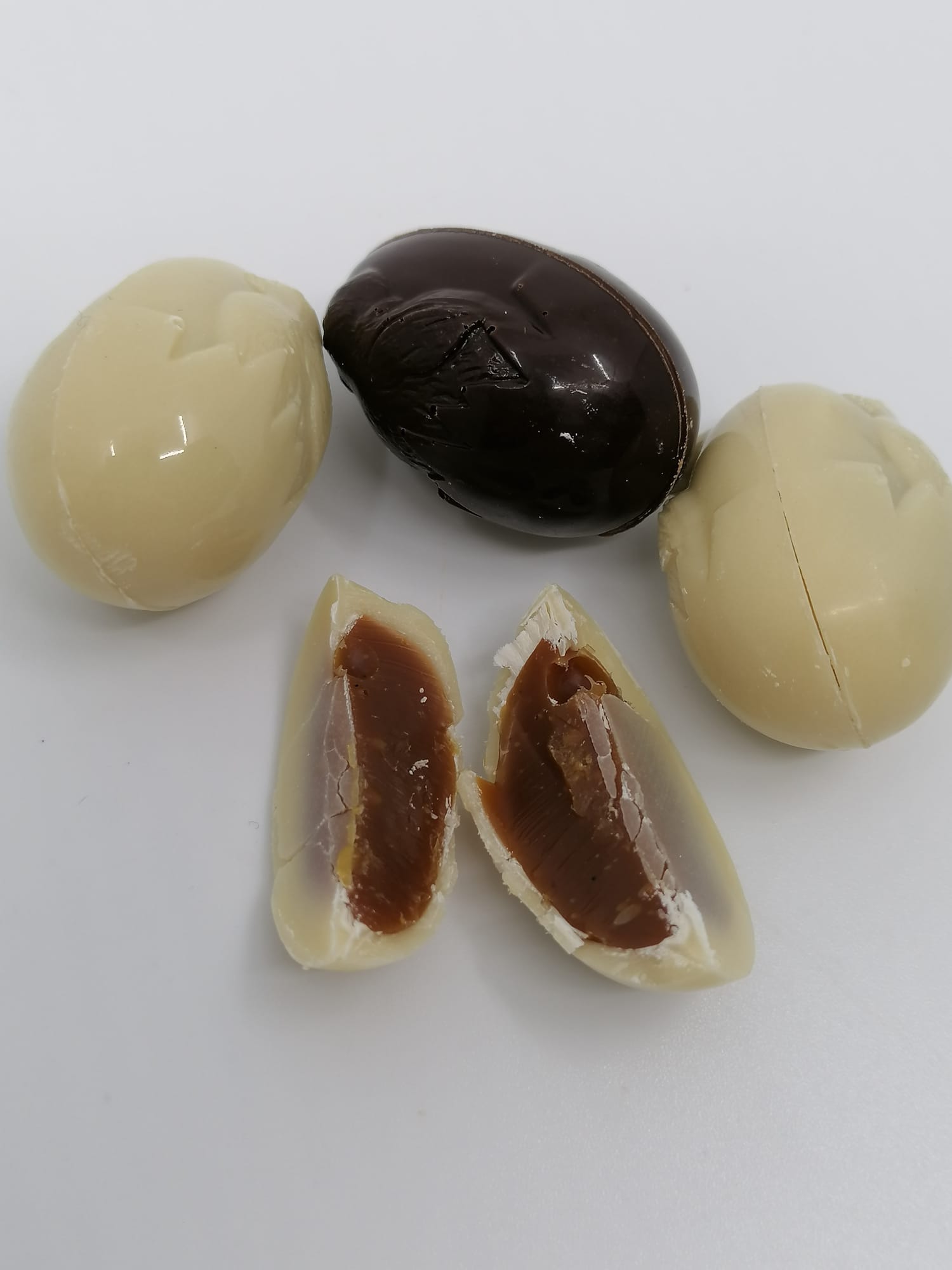 Kleine paaseitjes in vegan chocolade naar keuze, gevuld met koffiekaramel